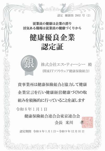 健康優良企業「銀の認定」を更新いたしました。